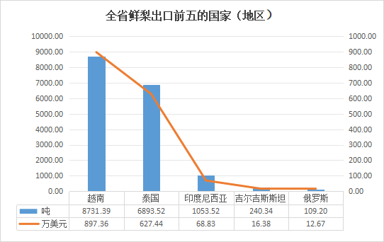 2025年1-7月,全省鲜梨出口数量1.76万吨,同比减少21.78%;金额1672.87万美元,同比减少28.24%;平均单价950美元/吨,同比减少8.31%。