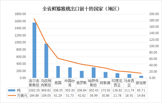 2025年1-7月,全省鲜猕猴桃出口数量4329吨,同比增长223.3%;出口金额594.61万美元,同比增长165.58%;平均单价1373美元/吨,同比减少17.89%。