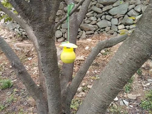 成虫诱杀主要是从樱桃果实膨大着色期开始至樱桃采收结束期间,利用成虫的趋性,采用诱剂杀死成虫,降低危害损失率。