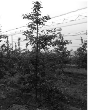 苹果矮化密植树形一般采用纺锤形,主枝应保持单轴延伸,不能有大的分枝,否则极易导致光照恶化。