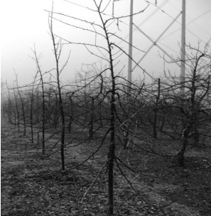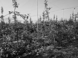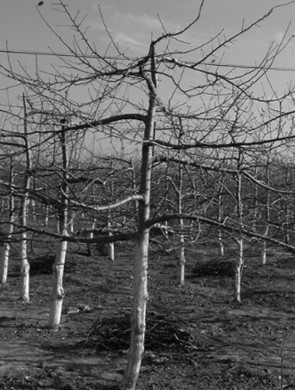 (4)防止早衰。苹果矮化密植栽培,树体易成花,进入结果期早,控制不当,极易过量结果;过量结果会削弱树势,出现早衰现象。树体早衰会限制果实品质的提高,因而控制结果量,防止早衰,是矮化苹果树管理不容忽视的问题。