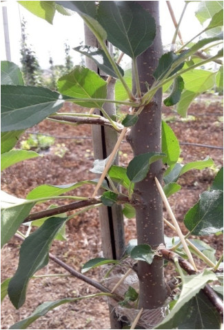 4)做好全年的病虫害防治工作。幼嫩的枝芽最容易遭受蚜虫、卷叶虫、象鼻虫、绿盲蝽、金龟子等害虫的危害,要做好这些害虫的防治工作。病害方面要做好白粉病、苹果、梨锈病、早期落叶病的防治工作,保护好叶片。