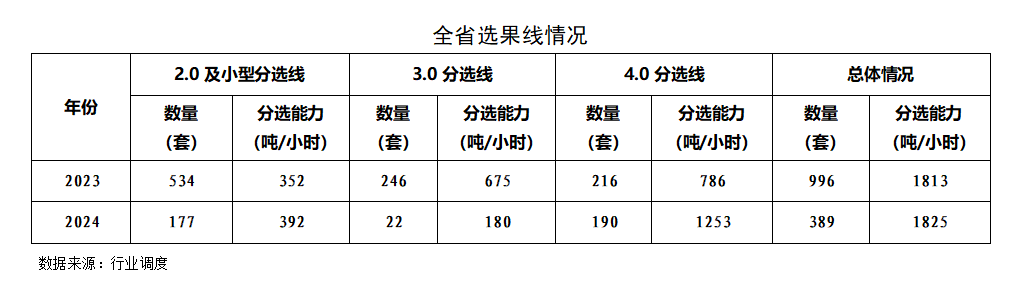 2019—2022年陕西省4.0智能选果线数量及分选能力