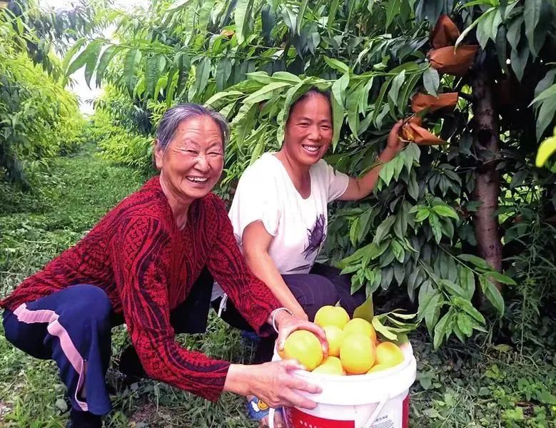 7月6日,在凤翔区柳林镇三家店村酒香脆种养殖家庭农场茂密的桃树林里,金灿灿的黄桃压弯了枝头,散发着诱人的果香,果农们正在加紧采摘成熟的黄桃。据了解,因为果子品质高、味道好,黄桃还未成熟时就有不少客商预订,现在早熟黄桃销售已进入尾声。