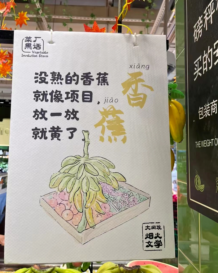 去年6月,上海大润发文案火上热搜,以拟人化的手法赋予蔬果生命与灵魂的“烟火文学”,引发全网共鸣。此外,8月的“烧烤文学”、10月的“菜场黑话”、1月的“乡村爱情”,通过贴近市井生活、与社会情绪巧妙融合的“生活文学”,让品牌与消费者建立起更加具体的、亲密的连接。