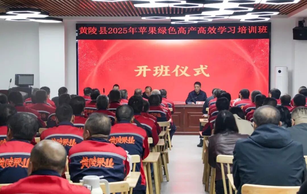 近日,黄陵县2025年苹果绿色高产高效农民果业技术员大培训班在县桥山隐培训中心(桥山街道办刘家川村)开班。各果业主产镇办主管领导与果业技术干部,农民果业技术员(骨干),以及部分涉果企业代表、果业生产大户共150余人参加培训。