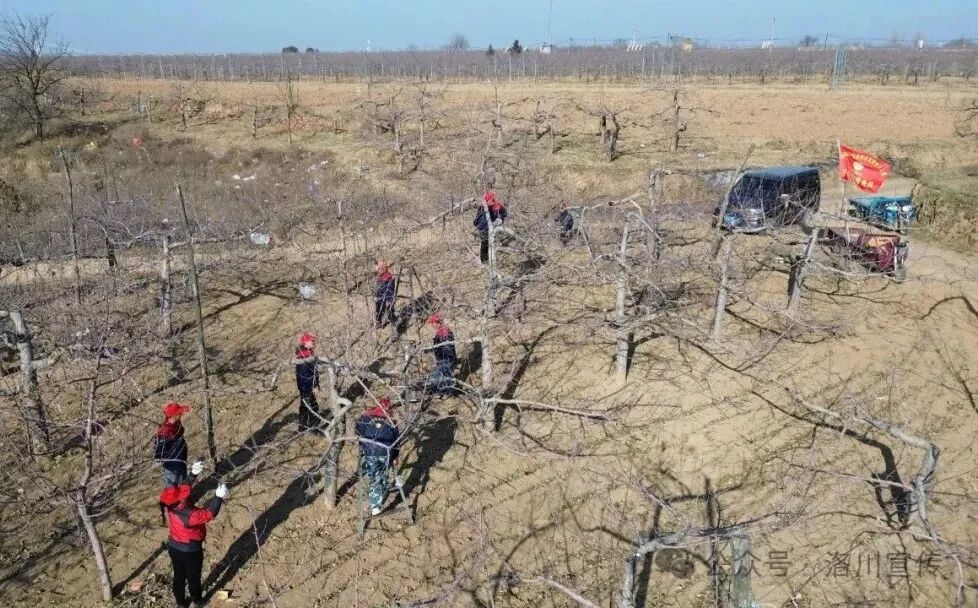 近日,在洛川县旧县镇洛生村果农田志宏的苹果园里,清脆的剪刀“咔嚓”声此起彼伏,一群社会化技术服务队队员们剪锯齐上、爬梯登高,剪小枝、除大枝,一步步优化果树的通风透光条件。