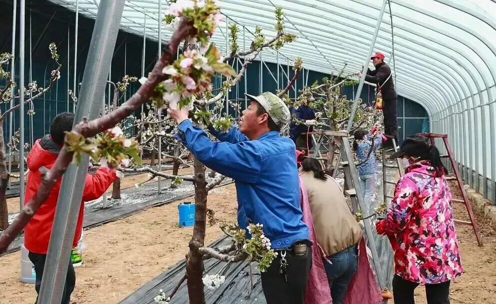 大棚樱桃授粉忙