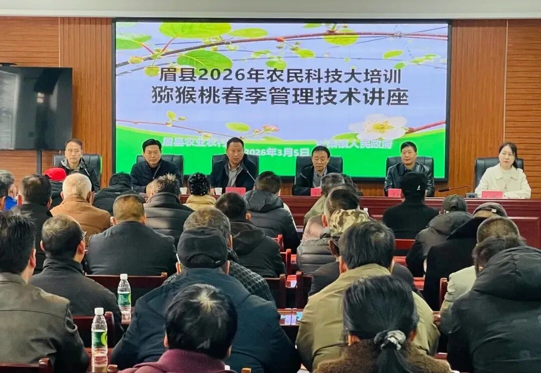 近日,眉县农业农村局、金渠镇人民政府在金渠镇田家寨村举办2026年春季农民科技大培训,邀请专家围绕猕猴桃春季果园管理核心技术、猕猴桃春季防灾减灾开展专题授课。