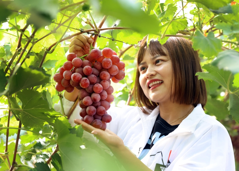 又是一年丰收季,在“中国红提葡萄之乡”的合阳县葡萄产业园的藤蔓上,红提葡萄已变成了紫红色,正是采摘葡萄的大好时节,只听在剪刀“咔嚓”落下的一刹,这晶莹如紫玉的水果才算有了它的生命。在这里,种植葡萄的技术已经成熟到“处处有鲜果、遍地有果香”的地步。