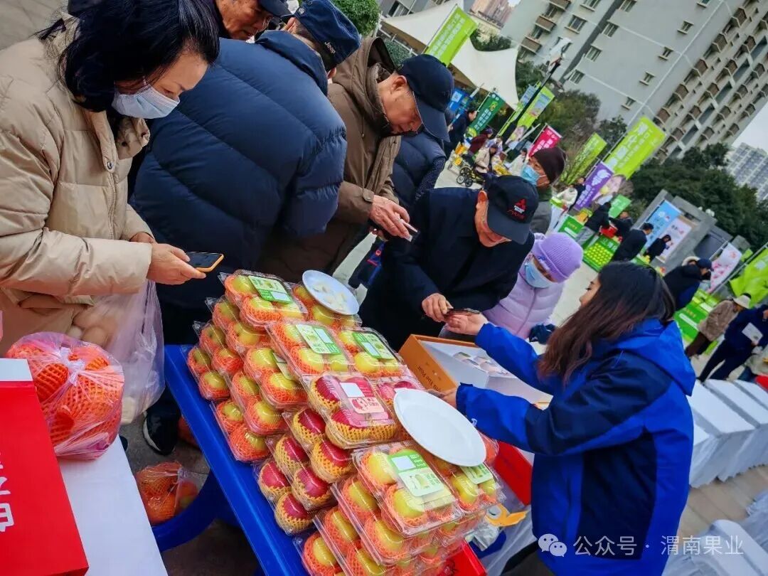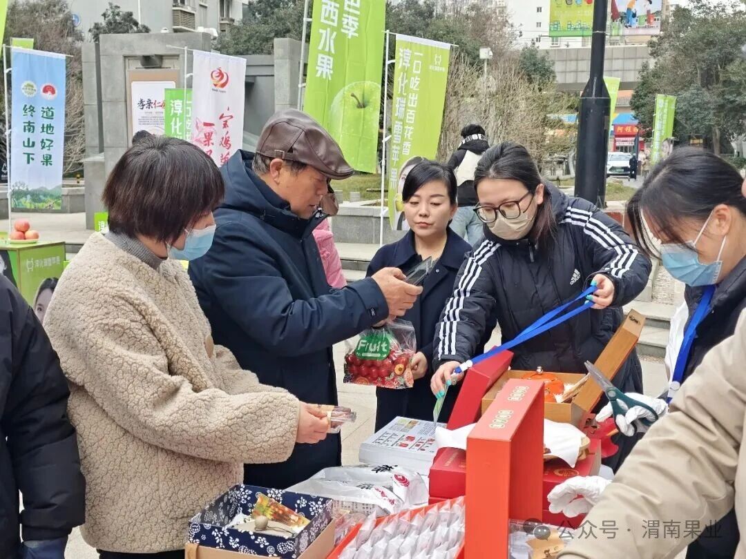 为深入贯彻农业农村部《促进农产品消费实施方案》要求,扎实落实全省果业“五百”“五进”三年行动部署,12月21日,市果业发展中心组织白水、富平、临渭等3个县区12家优质果品企业组团出征,积极参与省果业中心在西安市开展的果品进社区宣传促销活动,把白水苹果、富平柿饼、临渭猕猴桃等渭南特色水果精准送到西安市民家门口,为产地与社区搭建起高效直通的产销连心桥。
