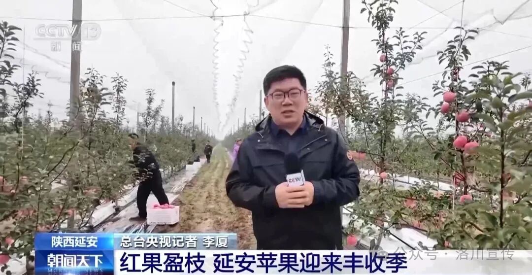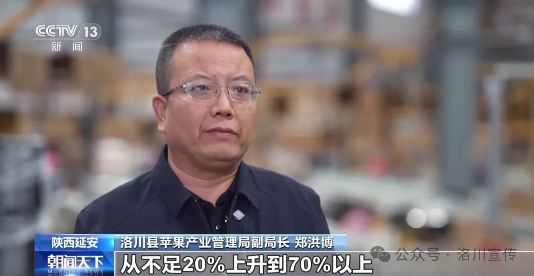 洛川县苹果产业管理局副局长 郑洪博:目前我们洛川苹果产业机械化率,从不足20%上升到70%以上,全县苹果储藏能力达到70.2万吨。科研、加工制造、物流营销等链条持续发力,加快形成现代苹果产业体系,助推洛川苹果高质量发展