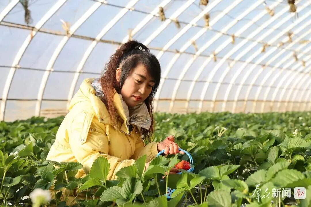 12月17日,陕北大地寒气袭人,但在榆林市子洲县三川口镇麻新庄村的温室大棚内,却暖意融融、生机勃勃。在一排排整齐的草莓垄间,饱满鲜红的果实点缀于翠叶之间,散发出阵阵清甜。前来体验采摘乐趣的游客络绎不绝,他们俯身挑选,享受着冬日里难得的田园惬意。