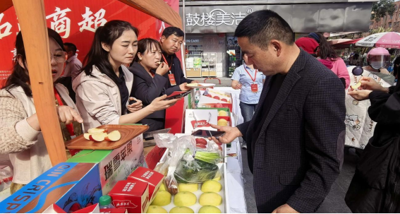 28日下午,延安市企业代表走进联家超柿开展“进门店”品鉴促销活动,邀请市民现场品尝,提升延安苹果在本地消费者中的认知度,实现品牌落地与销量提升的双重成效。